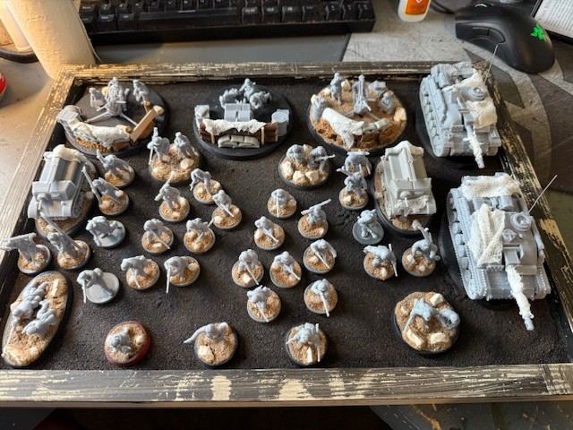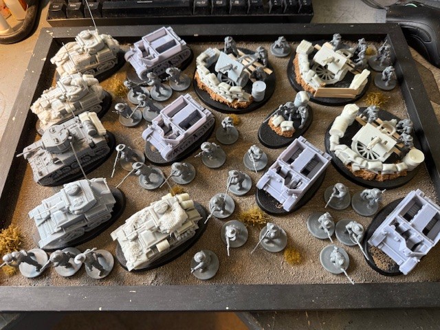 First off we have the Aussies I printed theme is supposed to be Tobruk to go with my SAS/LRDG force and a new wargames table I am building. The force is obviously a WIP and needs a lot of work before the painting stage.